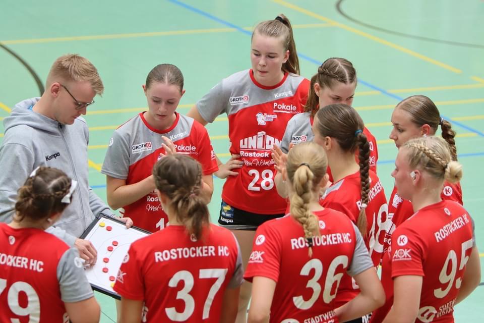 Das Rostocker Juniorteam ist nach der Verlegung der Partie gegen die HSG Neukölln durch die Spiele der anderen Mannschaften und deren Ergebnisse auf den letzten Oberliga-Plätz abgerutscht. So ist am Samstag (17.15 Uhr Mehrzweckhalle Dorf Mecklenburg) im Landesvergleich bei der TSG Wismar (10./2:10) ein Erfolgserlebnis in Form des ersten Saisonsieges notwendig. Ein zusätzlicher Anreiz für die Rostockerinnen sollte sein, dass mit einem vollen Erfolg der Landeskonkurrent in der Tabelle der Oberliga Ostsee-Spree überholt werden könnte. Die TSG-Vertretung konnte bisher in eigener Halle zweimal Unentschieden (gegen Neukölln 25:25 und gegen ProSport aus Berlin 23:23) spielen. Zuletzt unterlag Wismar hier dem BFC Preußen aus der Hauptstadt mit 25:34 Toren.