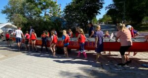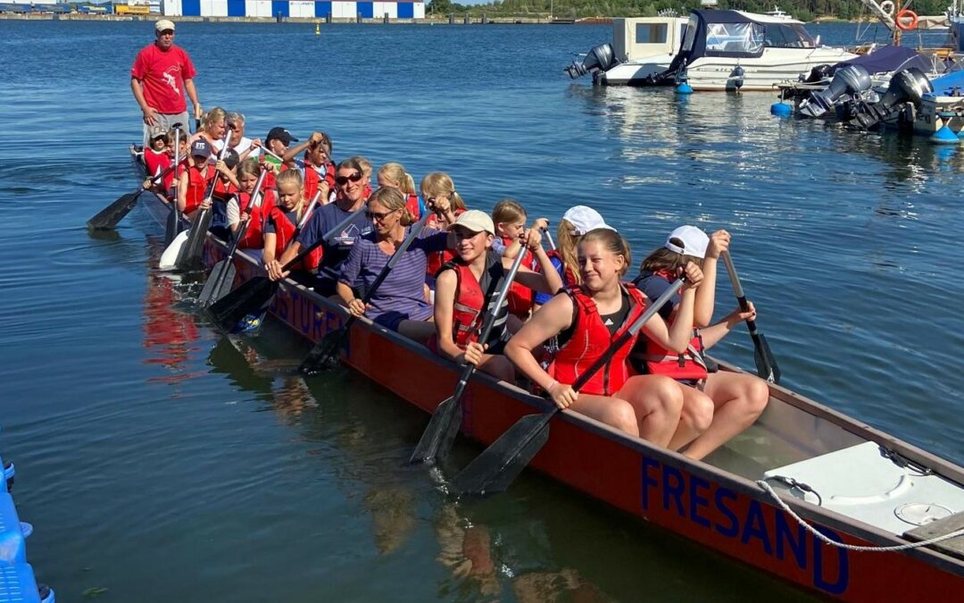 Eltern traf sich die Mannschaft von Bärbel Kordt in Schmarl um beim Verein BREITLING ein gemeinsames Drachenboottraining durchzuführen.