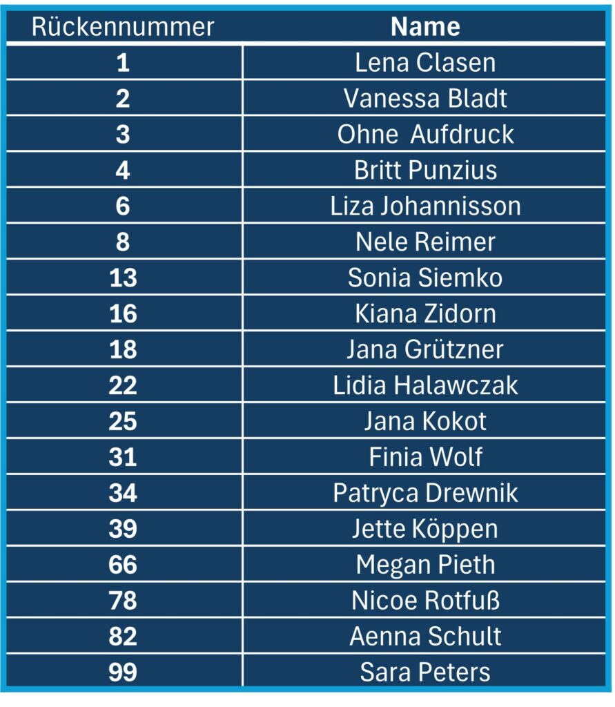 In der Tabelle findet ihr die Rückennummer eurer Lieblinge: