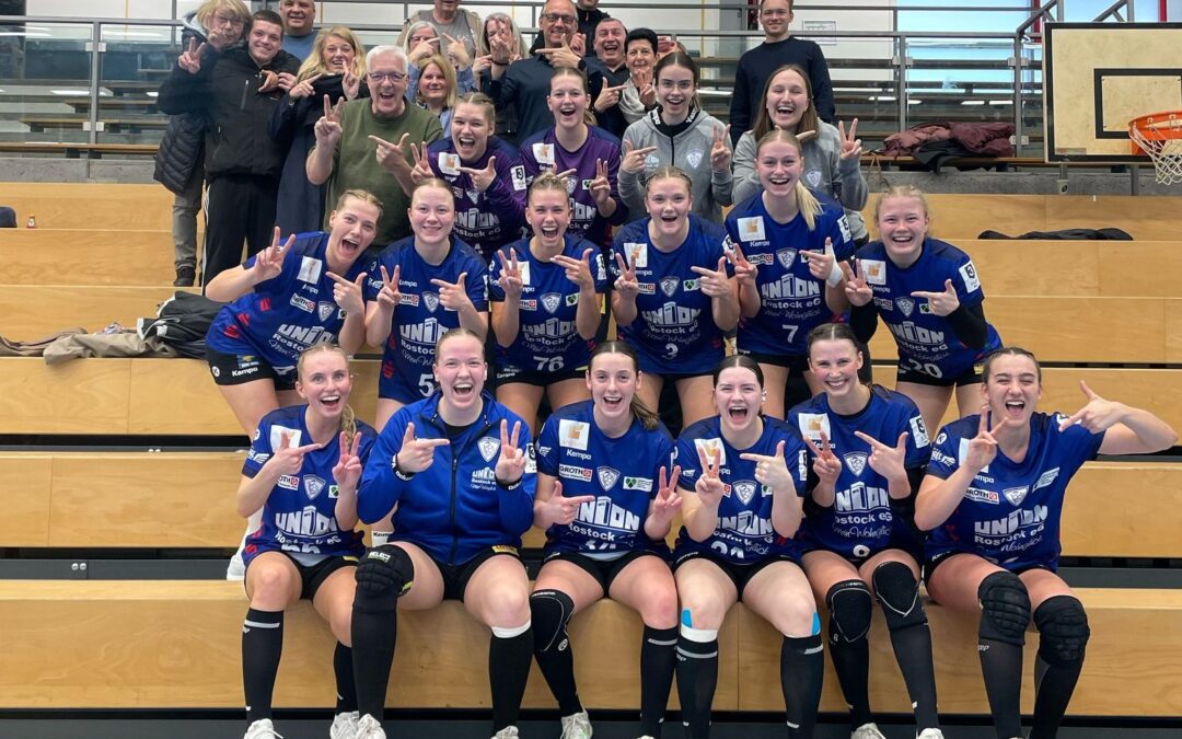 Altenholz Am Ende gab es dann ein Gruppenfoto mit den mitgereisten Fans. Durch einen jederzeit verdienten 34:28-Erfolg beim TSV Altenholz haben sich die Damen des Rostocker HC fünf Spieltage vor dem Saisonende sportlich zum dritten Mal in Folge die Teilnahme an der Aufstiegsrunde zur zweiten Bundesliga gesichert.